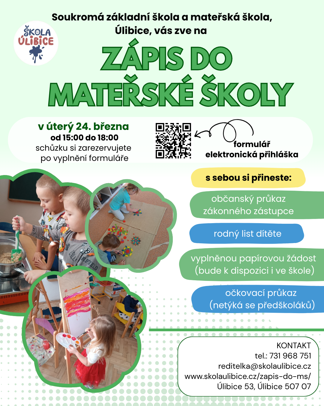 24. 3. 2026 - Zápis do MŠ 15:00 - 18:00